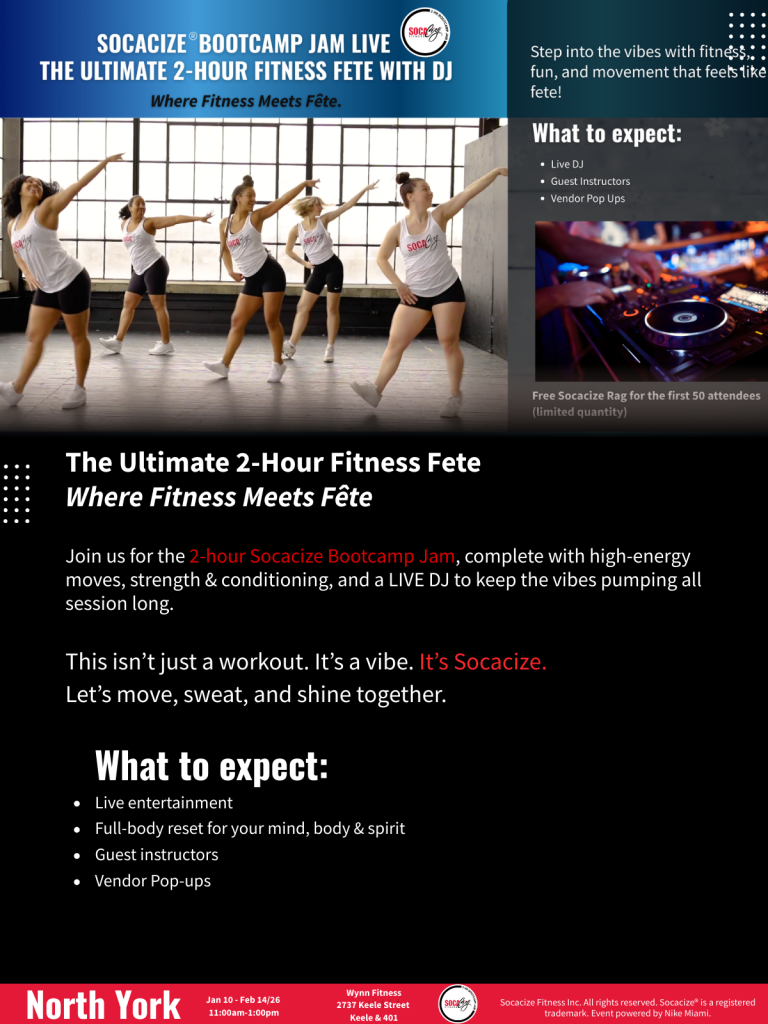 Step into a vibe of rhythm, movement, and motivation at Socacize Bootcamp Jam LIVE
